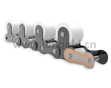 各規格輸送鏈為基礎,在鏈條節距中間的上部安裝頂置滾子,此頂置滾子可直接輸送輸送物。能夠以各種材質制造輸送鏈。